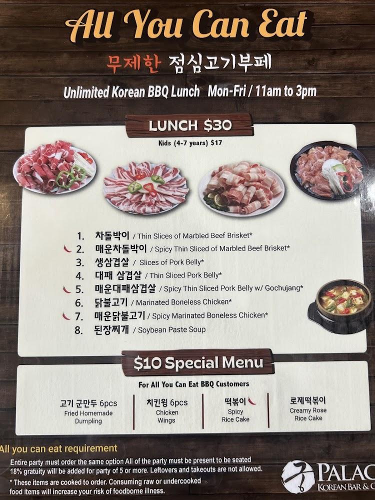 Welcome to Palace BBQ, your premier destination for authentic Korean barbecue in Lakewood, WA! Nestled at 8718 S Tacoma Way, we offer a vibrant, relaxed atmosphere perfect for lunch or dinner with family and friends. Our diverse menu features traditional barbecue options and an enticing buffet selection, complemented by a full bar serving beers, cocktails, and fine wines. Enjoy quick service and dine-in or takeout options in our accessible space. Whether you're a local or just passing through, come experience the flavors of Korea at Palace BBQ—where great food meets even greater company!